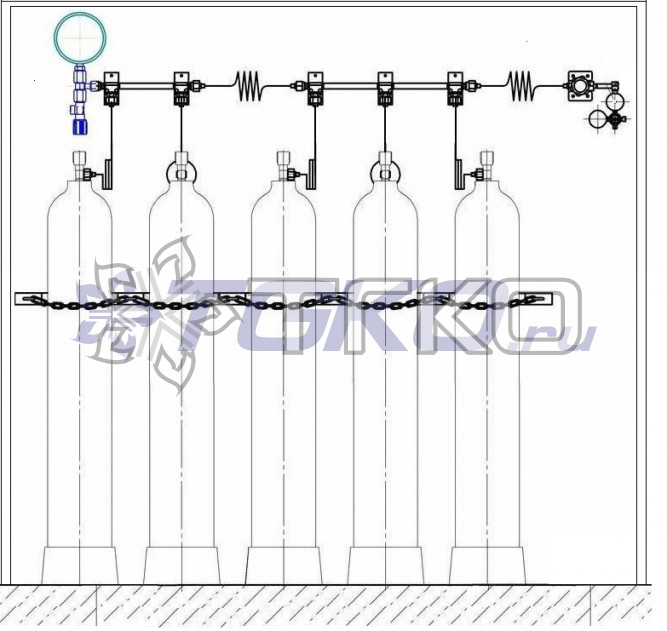 Рампа перепускная РП-01 (5ш 1х5) кислородная на 5 баллонов предназначена для непрерывной подачи газа потребителю. Комплектность рампы: коллектор – 2 шт., змеевик рамповый – 5 шт., редуктор – 1 шт., шкаф с ложементом – 1 шт., клапан запорный – 1 шт., узел измерительный (тройник рамповый с манометром и продувным клапаном) – 1 шт., змеевик межрамповый – 2 шт., угольник рамповый – 1 шт.