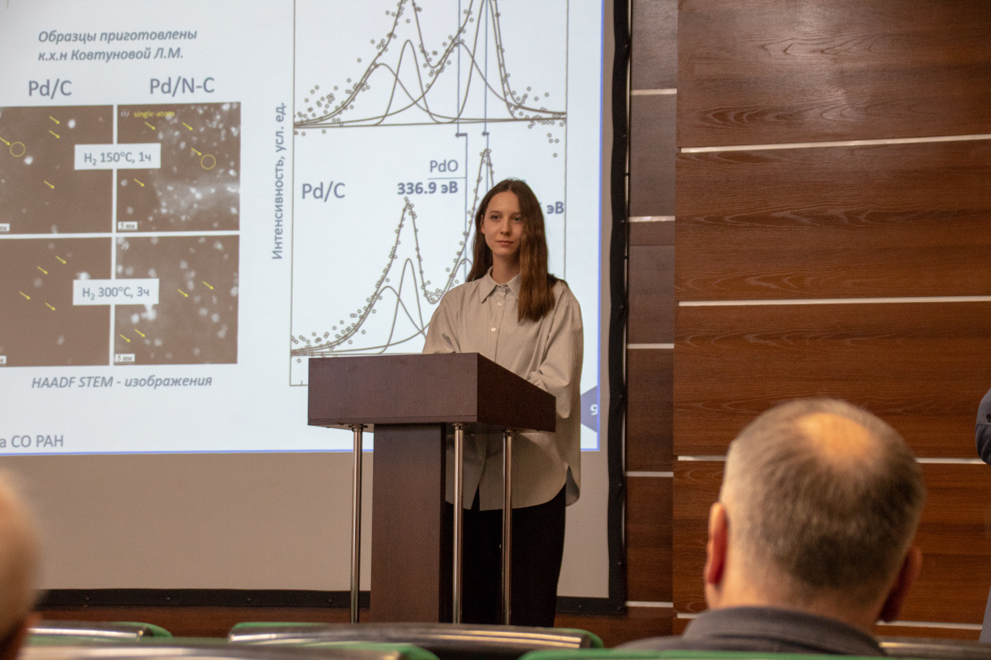 Младший научный сотрудник отдела материаловедения и функциональных материалов ФИЦ "Институт катализа СО РАН", аспирант первого года обучения Данил Шивцов представил работу по механохимическому синтезу Sn-содержащих катализаторов на основе металлов подгруппы железа и изучению их каталитической активности в процессе пиролиза углеводородов с получением углеродного наноматериала. Актуальность темы заключается в поиске более рациональных способов переработки природного и попутного нефтяного газа. В качестве одного из возможных решений был предложен способ каталитического пиролиза углеводородов. Исследованием механизма протекания этого процесса занимался в свое время Роман Алексеевич Буянов.
