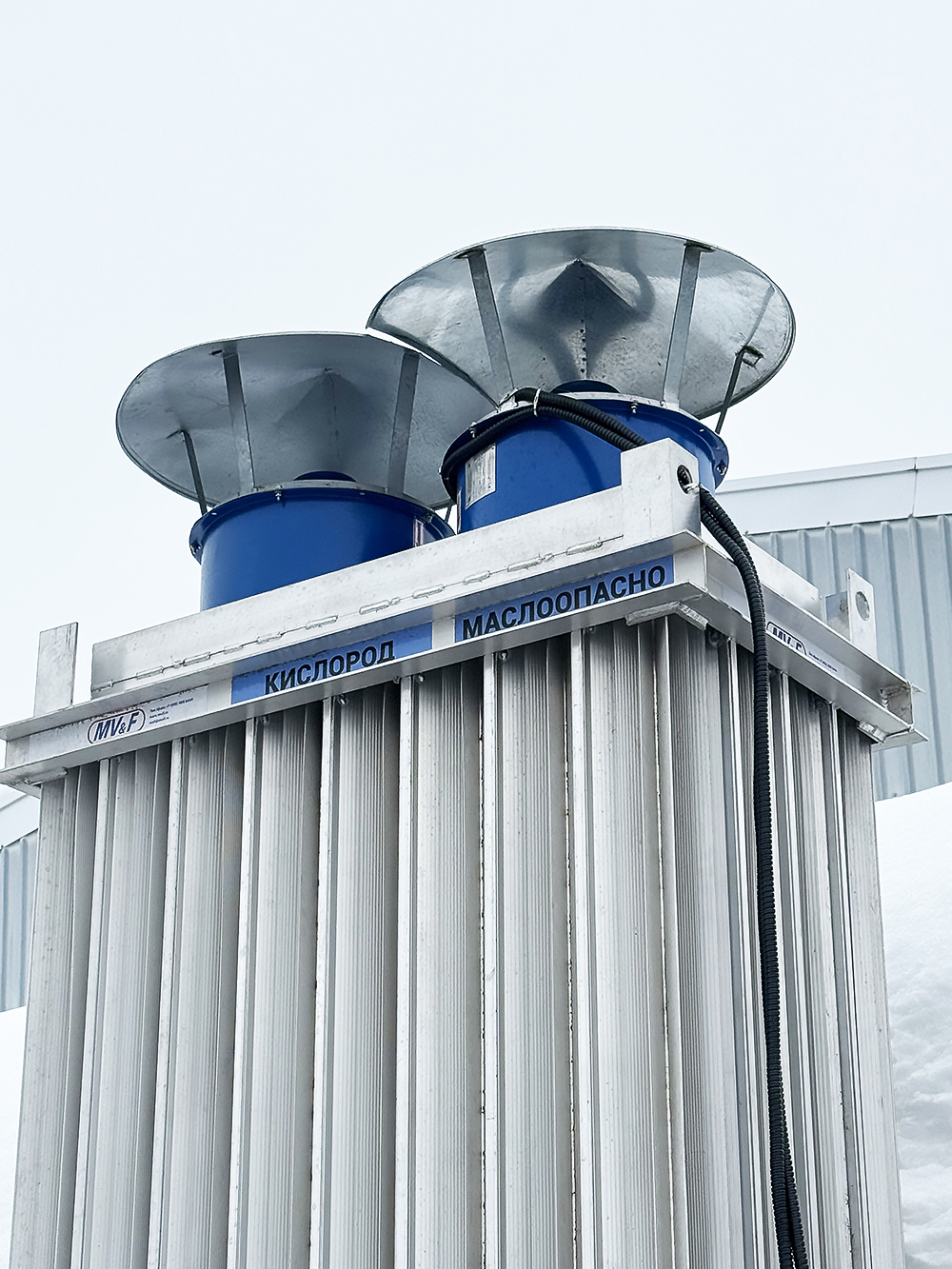 Чтобы исключить попадание холодного газа в баллоны высокого давления, нужны надежные атмосферные испарители и электрические нагреватели высокого давления. Многолетний опыт эксплуатации атмосферных испарителей и нагревателей высокого давления производства компании "Мониторинг Вентиль и Фитинг" показал их надежность и эффективность. Одним из таких успешных примеров является кислородный испаритель высокого давления с принудительной конвекцией воздуха, установленный и подключенный на территории заказчика в Подмосковье.