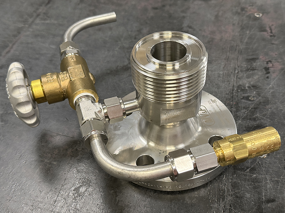 Фильтр оснащен продувочным вентилем и предохранительным клапаном RegO для продувки рукава и защиты фильтрующего элемента от разрушения. Углекислота нередко содержит целый ряд загрязнений, который лучше отделить при сливе. Прибор также оснащен аварийной арматурой и сбросным вентилем. Специалисты компании "Мониторинг Вентиль и Фитинг" изготовили фильтр по техническому заданию заказчика.