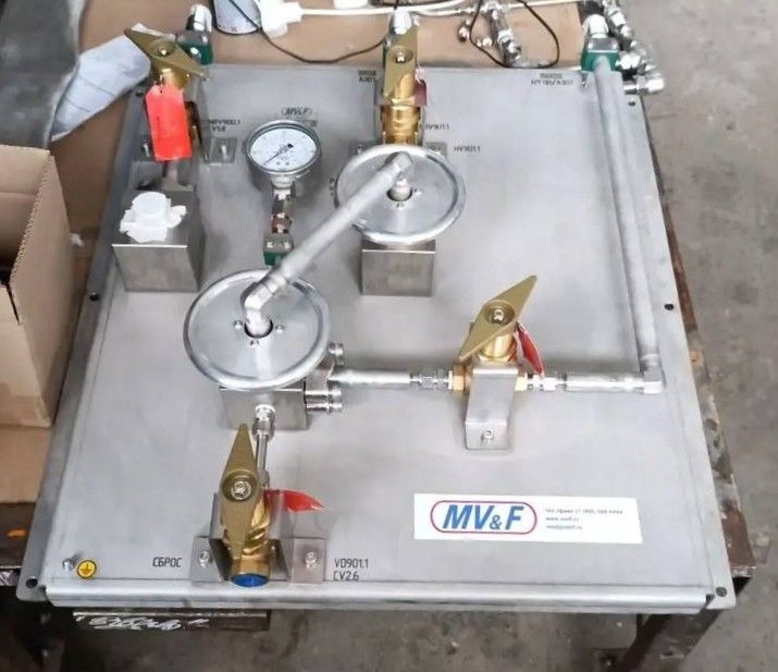 Компания "Мониторинг Вентиль и Фитинг" отправила покупателю переключающий щит для приготовления газовых смесей в моноблоках и баллонах высокого давления на промышленной наполнительной станции.