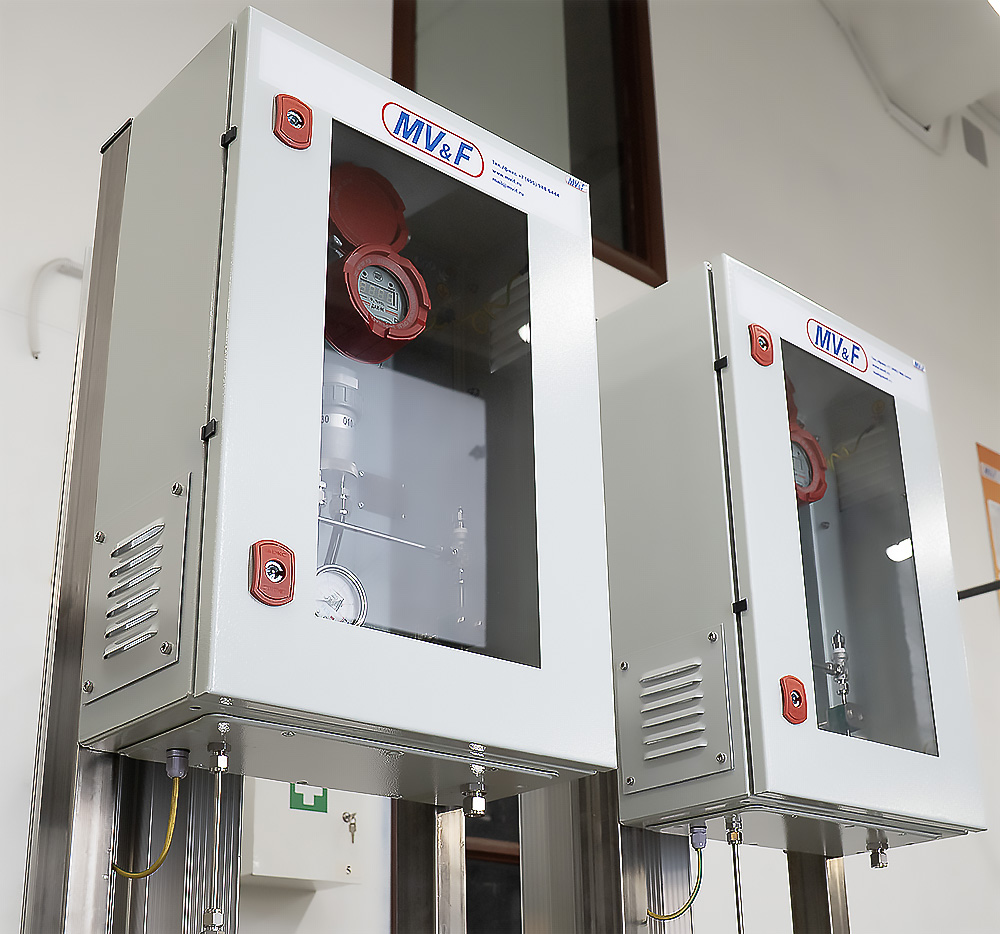 Анализаторы сконструированы в виде щитовой сборки, смонтированной в шкафу на несущей раме. Вся запорно-регулирующая арматура изготовлена из таких коррозионностойких материалов, как нержавеющая сталь, латунь и полиамид.
