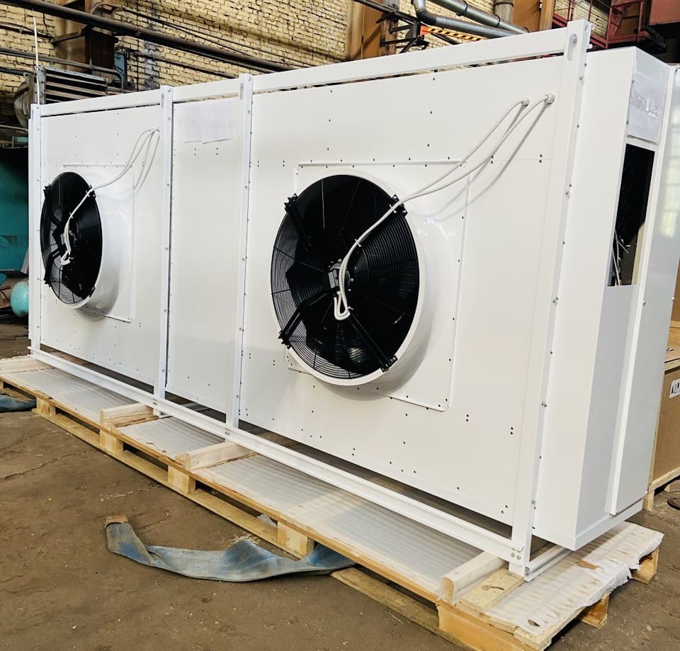 Оборудование состоит из двух теплообменников, что позволяет оттаивать один теплообменник во время работы другого. Переключение происходит автоматически. В теплообменниках используются медные трубки, но по желанию заказчика могут быть установлены трубки из нержавеющей стали.