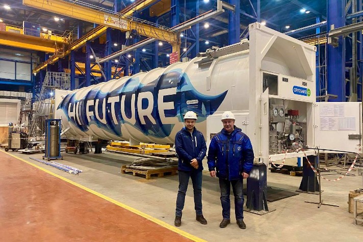 Российский морской регистр судоходства завершил очередной этап освидетельствования прототипа инновационного криогенного контейнера-цистерны Т75 проекта CryoSafe-42 для перевозки и хранения сжиженного водорода.
