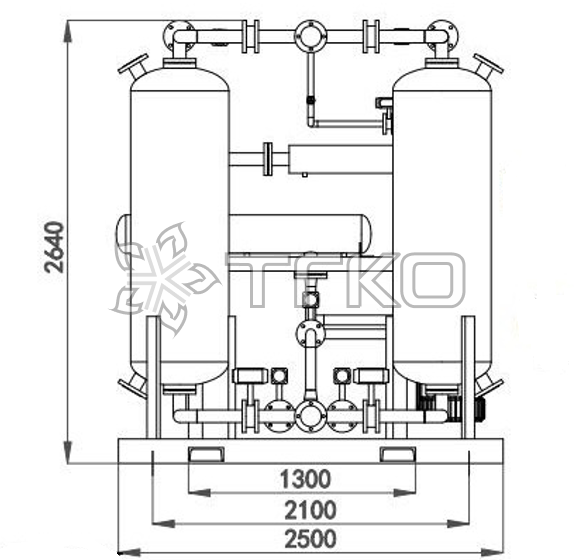 Адсорбционный осушитель РОНОТЕХ серии SGD с горячей регенерацией без потерь сжатого воздуха на регенерацию.