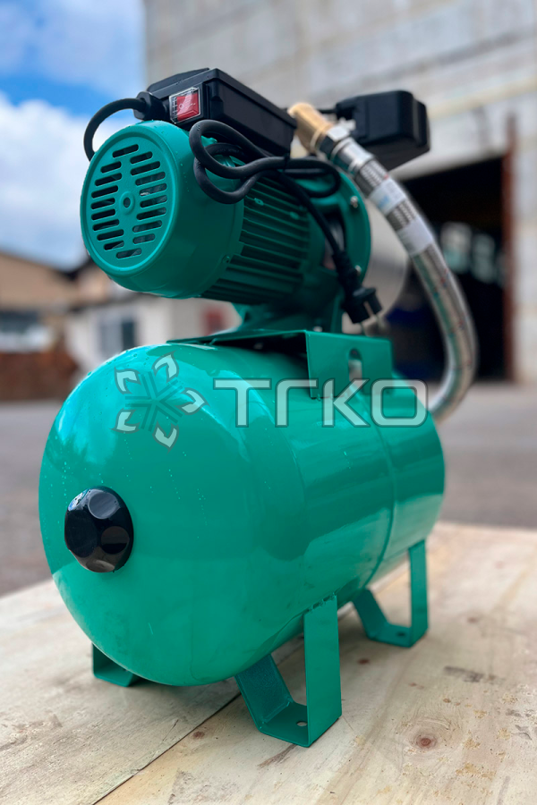 В комплектацию насосной установки входит мембранный бак на 20 л, который снижает количество гидроударов и включений.