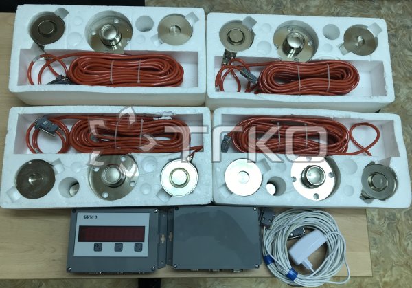 Система контроля масс СКМ предназначена для контроля массы жидкой углекислоты в стационарных резервуарах, с подачей светового и звукового сигналов о достижении максимально допустимого значения массы. Система контроля состоит из 4 х тензометрических датчиков, установленных под опорами резервуара, блока контроля массы,
